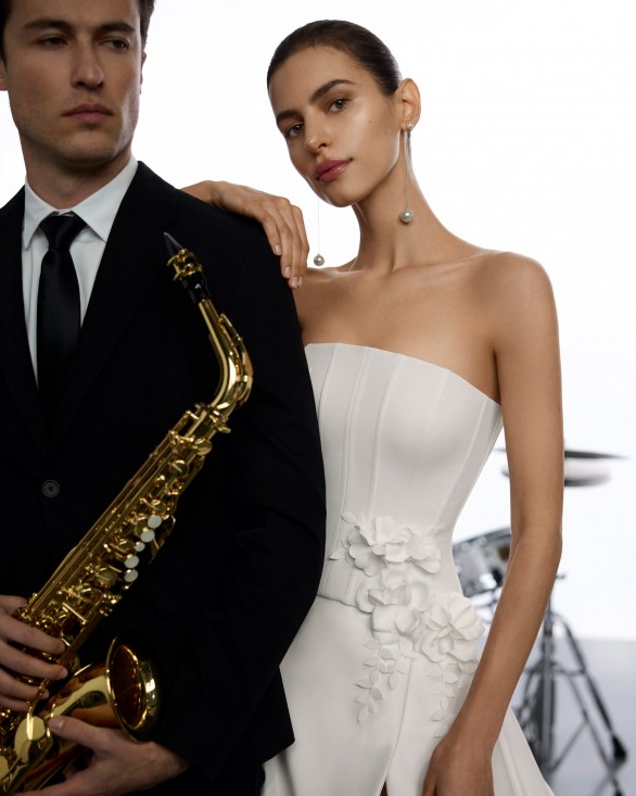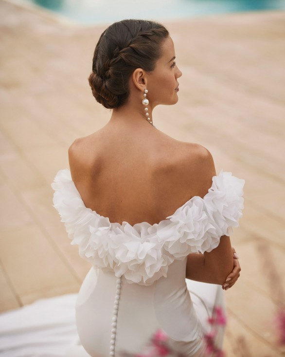 Eliminar de lista Lista de deseos Quick view Luna Novias - JAIRA Vestido de novia largo de dos piezas con corte sirena. Crepé bielástico, escote palabra de honor, espalda abierta con choker con caídas.