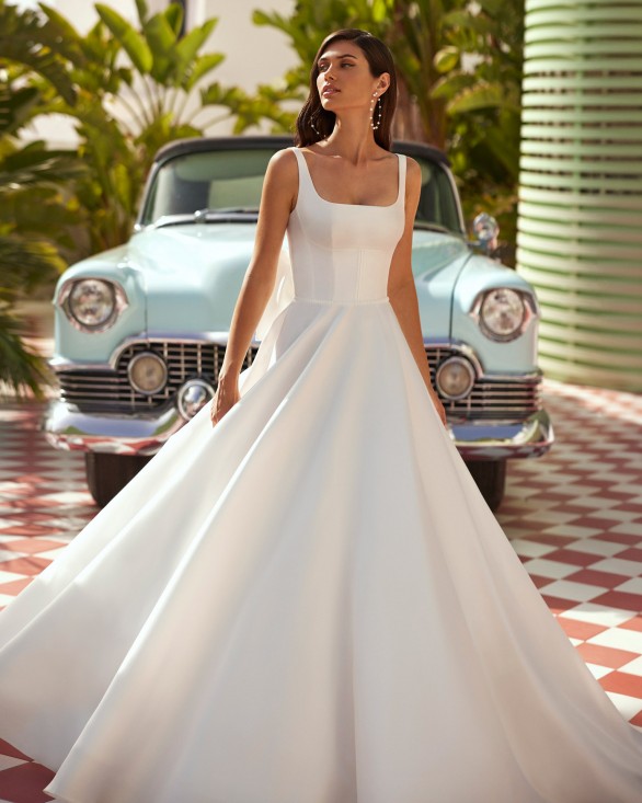 Eliminar de lista Lista de deseos Quick view Luna Novias - JULEE Vestido de novia largo de corte volumen. Mikado, escote cuadrado, tirantes, espalda con corsé y lazo.