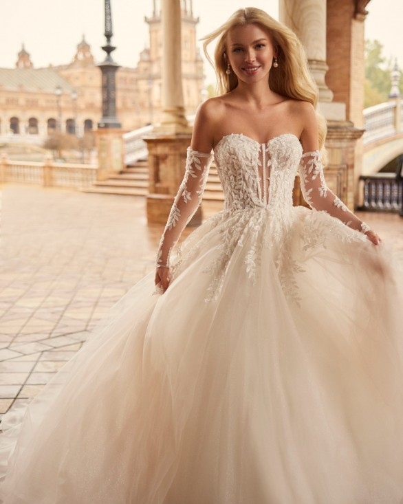 Eliminar de lista Lista de deseos Quick view Aire Royale - KENZIE Vestido de novia, largo línea A. Elaborado con tul, escote corazón y manga extraíble.