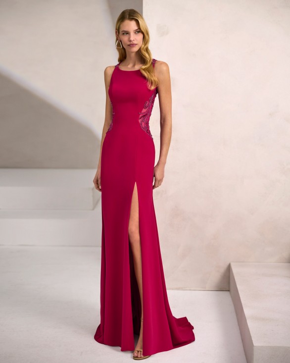 Eliminar de lista Lista de deseos Quick view Marfil - 9J02 Vestido de fiesta largo y estilo elegante. Confeccionado en crepé elástico y pedrería. Con escote barco y espalda con tirantes cruzados, con...