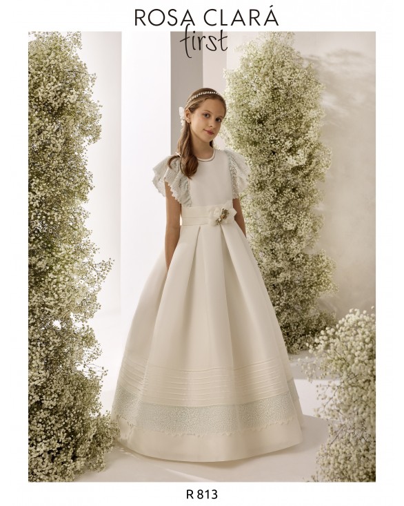 Eliminar de lista Lista de deseos Quick view Rosa Clará First - R813 Vestido de comunión largo, de estilo clásico. Confeccionado en esterilla con vainica y adornos florales. Presenta escote redondo, manga mariposa...