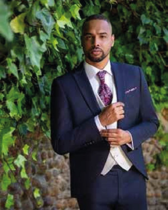 Este traje de novio representa la perfecta fusión entre elegancia clásica y diseño actual. Confeccionado en un tejido azul profundo de acabado refinado, destaca por su corte slim que estiliza la silueta y aporta una presencia impecable. El chaleco marfil introduce un contraste luminoso, mientras la corbata burdeos con textura aporta un toque de distinción y personalidad.